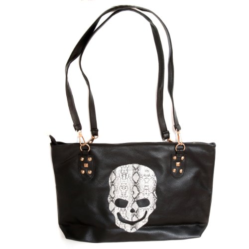 Accessoryo - Grand Sac À Main Shopper Noir Avec La Conception De Crâne De Serpent
