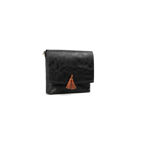 Accessoryo - Dames Sac À Main Noir Avec Des Détails De Gland Brun Avec Bandoulière Réglable