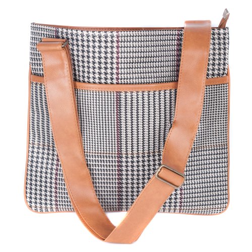 Accessoryo - Dames En Noir Et Blanc Dogstooth Avec Tan Sac À Main De La Sangle