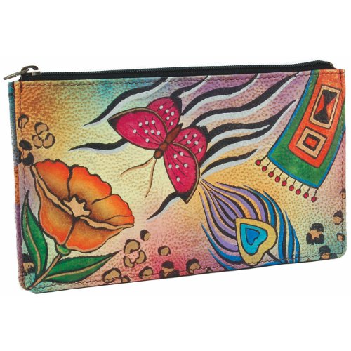 Portefeuille en cuir imprimé TWO Ce beau portefeuille TWO FOR JOY de ANUSCHKA® peut être Cuir peint à la main Pochette éclair en arrière et à l